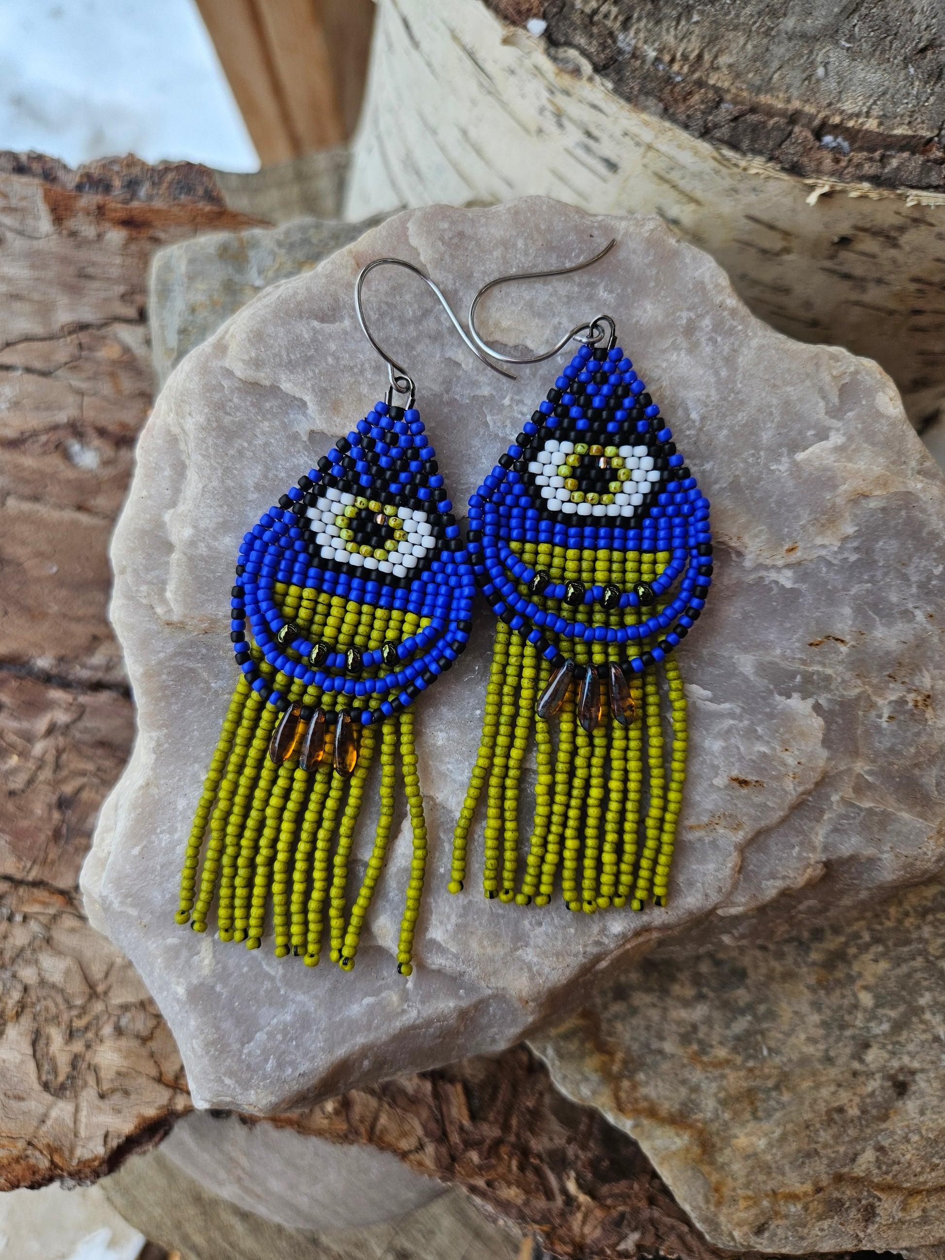 Measures 3 1/4" from top loop to bottom bead.